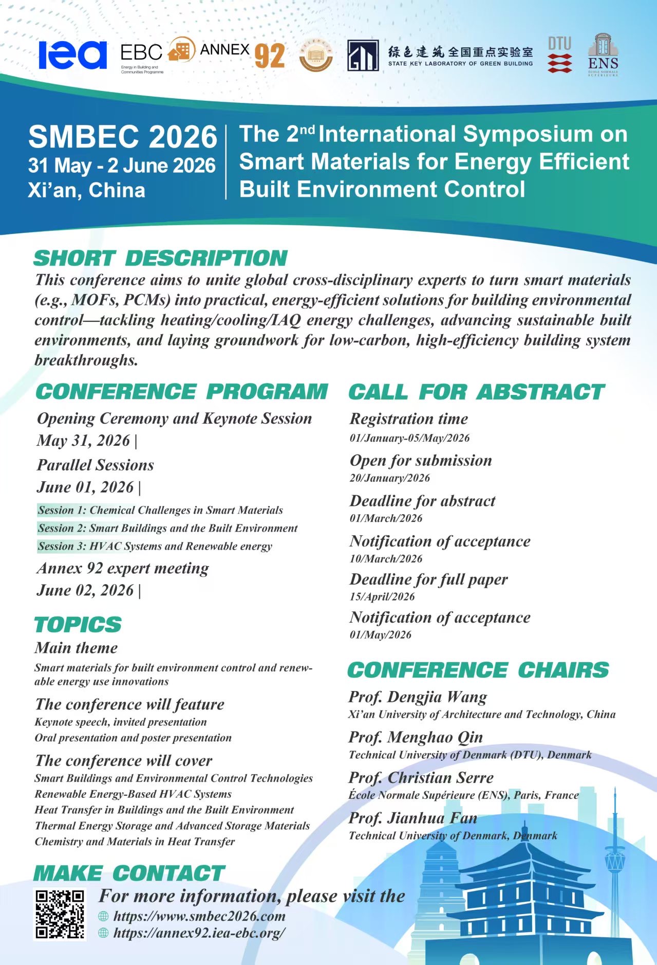 the 2nd International Symposium on Smart Materials for Built Environment Control (SMBEC 2026)